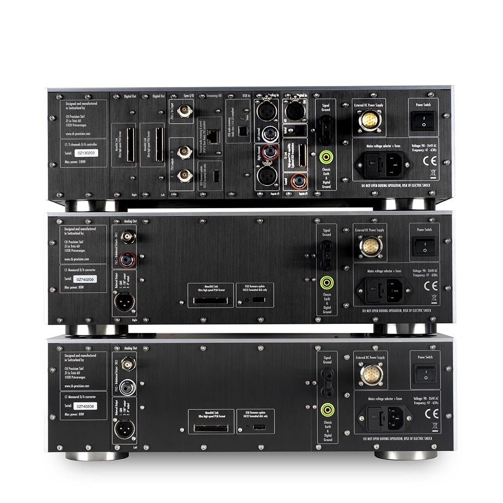 Feeding the left and right channels to independent DACs allows us to provide dedicated, fully regulated power supplies for the digital processing and decoding functions electrically isolating these critical processes from the control functionality and the optional analog inputs. By placing the DACs in completely separate chassis units, we achieve zero crosstalk between the two channels and prevent high-frequency contamination of the critical analog power supplies. The analog output from each DAC chassis retains the discrete, fully-complementary topology of the C1, but now with a dedicated power supply for each channel, further reducing noise and increasing stability. The improved performance of the output stage adds dynamic range and authority to the C1 Mono’s musical performance, to match the added resolution of its digital stages. The end result is the most musically natural and satisfying digital replay we have ever achieved.